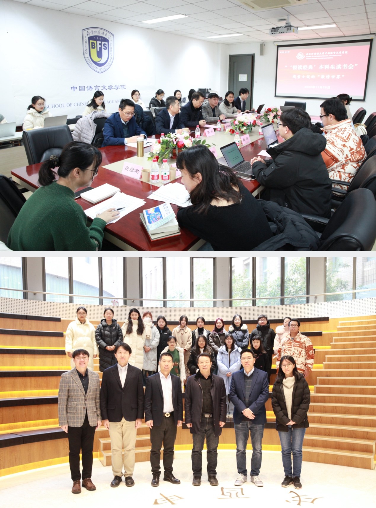 2023年11月25日,由北京外国语大学中国语言文学学院、中央民族大学文学院、对外经济贸易大学中国语言文学学院联合举办的“‘悦’读经典本科生读书会”在北京外国语大学成功召开。中央民族大学文学院副院长毕海、对外经济贸易大学av中文在线副教授褚云侠,北京外国语大学教务处副处长郭斌、av中文在线执行院长李建盛、日语学院翻译研究中心主任宋刚副教授,以及来自三校的本科生和硕士研究生等三十余人参加本次活动。