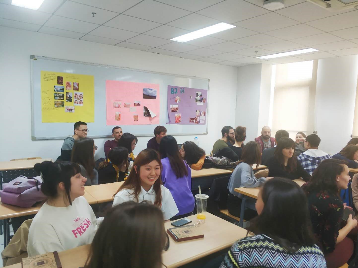 当天下午,校园里春光明媚,鲜花盛开;教室内欢声笑语、热闹非凡。二十余名意大利留学生和十余名意大利语专业的中国学生齐聚一堂,相谈甚欢。