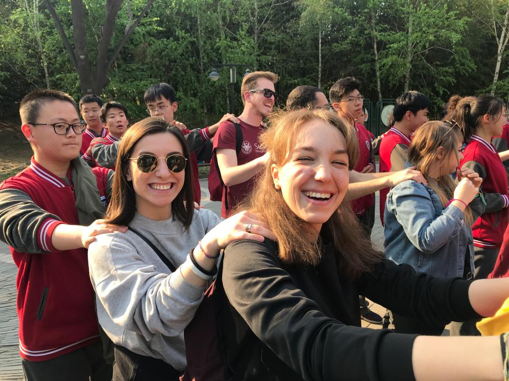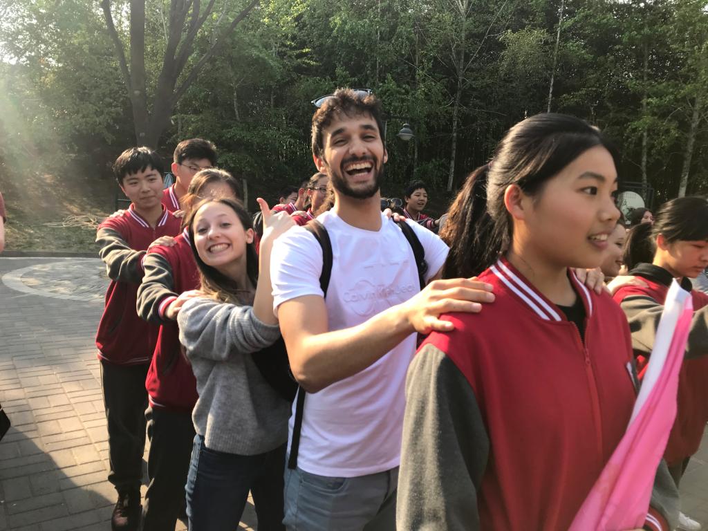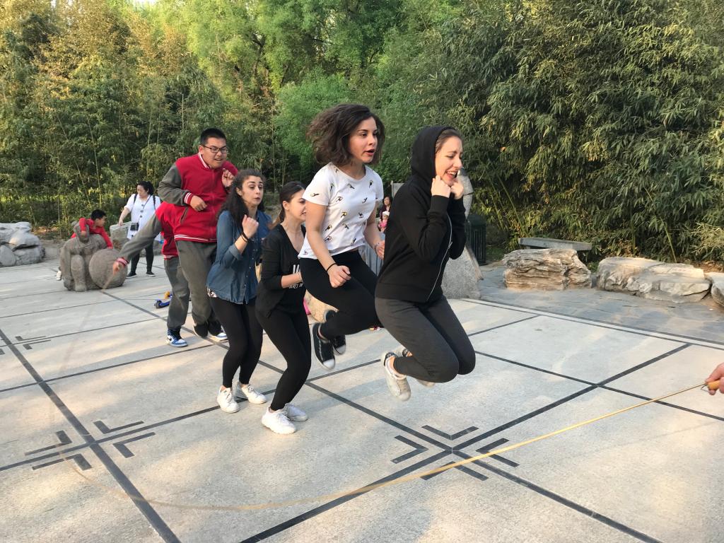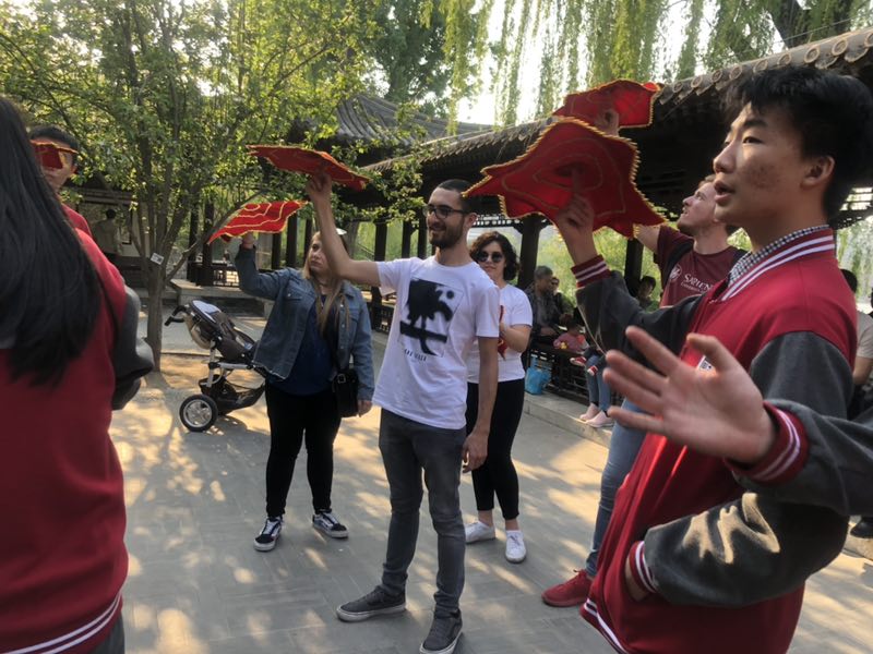 2019年4月15日星期一下午,北京外国语大学av中文在线对外汉语系2018级意大利罗马班的全体留学生与北外附中初三、高一年级学生共同参加了在紫竹院公园举办的“青春飞扬,舞动春日” “1+3”年级趣味运动会。
