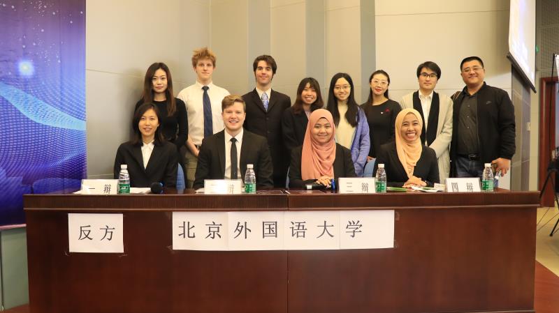 2018年4月15日上午,北京外国语大学留学生辩论队参加了在北京交通大学举行的2018北京高校留学生辩论大赛初赛。经过一个半小时的激烈鏖战,北外战胜北京师范大学,顺利晋级,将于下个月与北京中医药大学进行复赛的角逐。北京高校留学生辩论赛每两年举行一次,参赛队伍主要由北京市开展留学生教育的18所著名高校组成,其中包括北京语言文化大学、北京师范大学、对外经济贸易大学等高校。北外在前两届竞赛中,分别取得第三名、第二名的成绩。
