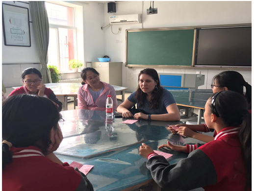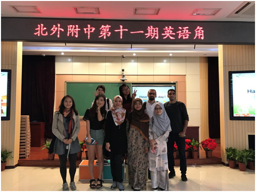 6月2日,av中文在线培训中心的11名留学生来到北外附中,参加了一场别开生面的午间英语角活动。