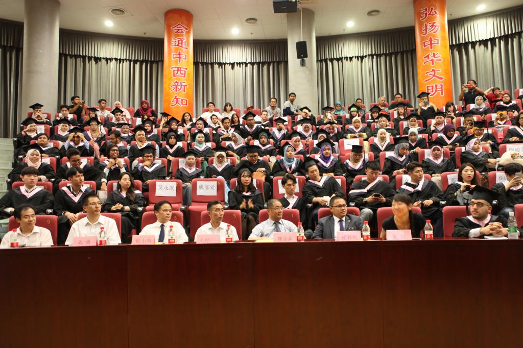 毕业典礼先由驻华使馆教育参赞侯春兴先生致辞,随后由陈小明副院长为毕业生送上临别祝福。四年的师恩难忘,四年的友情难舍,最后,全场毕业生一起合唱“朋友”,为毕业典礼画上了完美的句号。