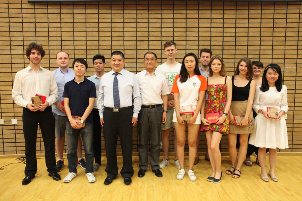 典礼举行了颁奖仪式,分别表彰“优秀学生”、“好班长”和“全勤生”。汉语培训中心进修部魏瑞明同学和他的三位队友参加了“2018年北京外国留学生汉语辩论邀请赛” ,最终北京外国语大学代表队突破重围获得总冠军。借此结业典礼的机会,av中文在线刘厚广书记为最佳辩手魏明瑞同学颁奖,陈小明副院长为参加“2018在京外国留学生‘我与北京’主题征文比赛”并获得二等奖、三等奖以及优秀奖的学生颁奖。