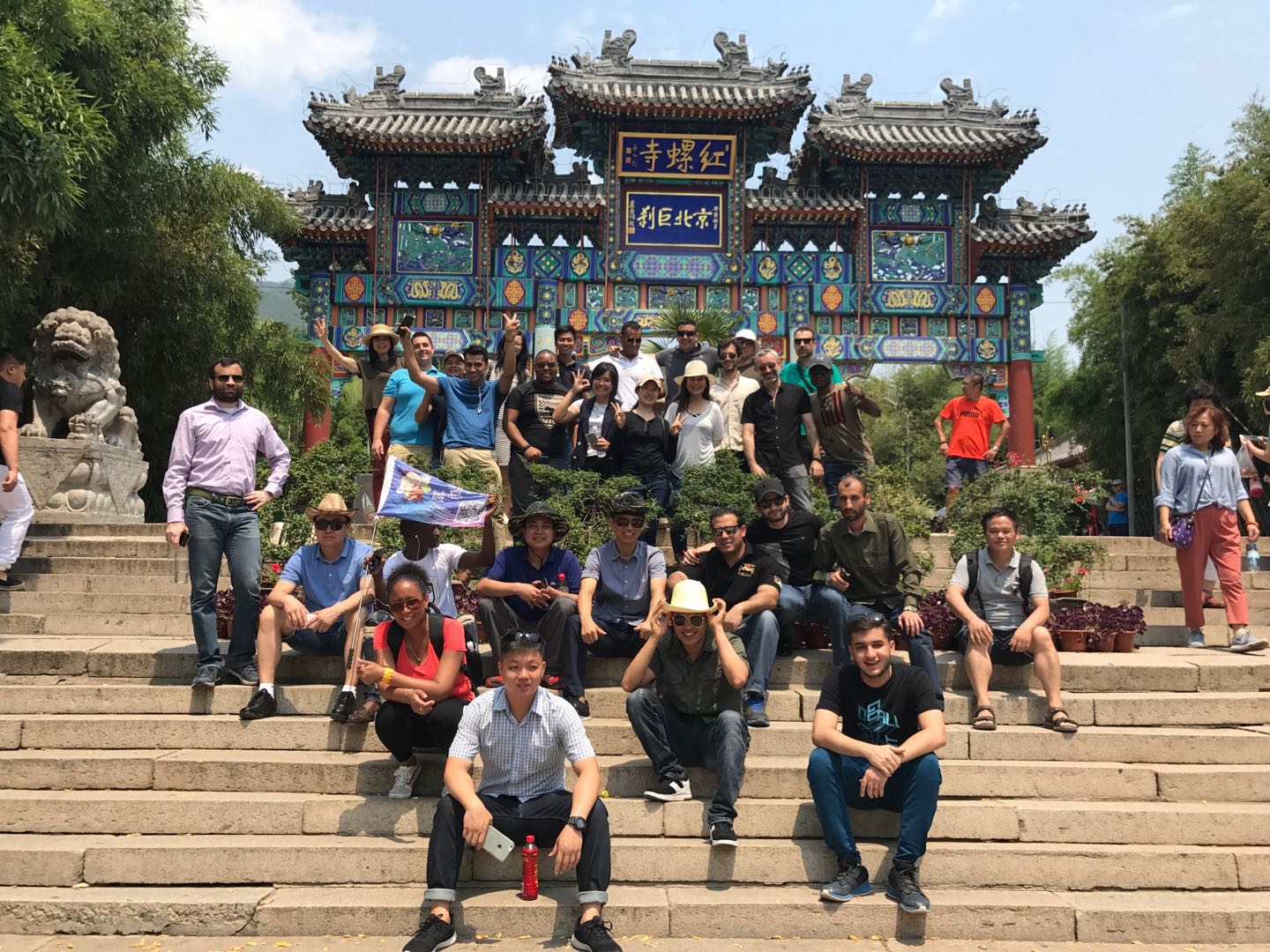 红螺寺是千年古寺,是北京著名的佛教圣地,保存有上千年的银杏树和松树。寺内绿树成荫,在当天的烈日炎炎下撑起一方清凉安宁的净土。来自30多个国家的外警学员们兴致勃勃地参观了三个主殿,在五百罗汉园中仔细寻找跟自己面貌相仿的罗汉像,在绵延的观音山中领略了北京文化宁静和谐的另一面。
