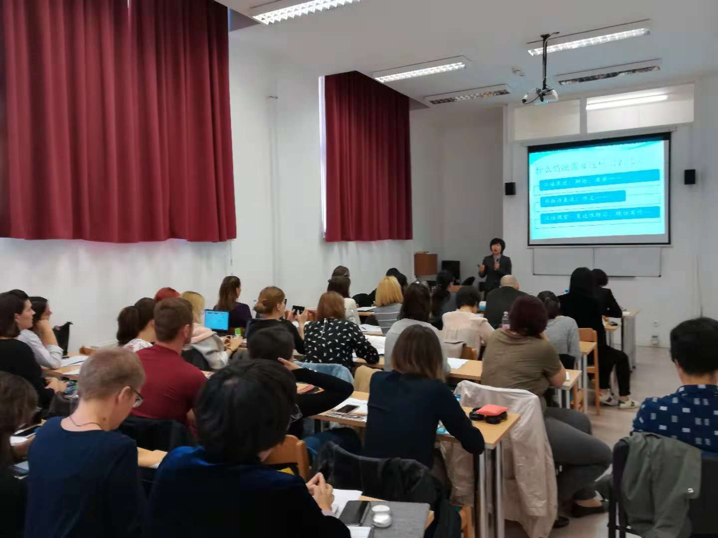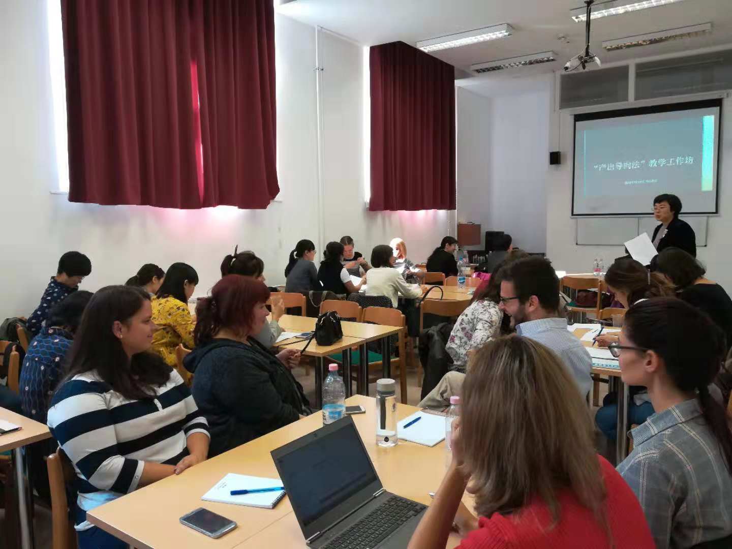 10月4日至8日,av中文在线执行院长张晓慧率领汉语国际教育专家团队,访问匈牙利罗兰大学孔子学院,参加中东欧本土师资培训,以“产出导向法”在汉语教学中运用为主题,举办了专题讲座和工作坊。来自中东欧16国的30余位本土教师及孔院的部分汉语教师和志愿者参加培训。