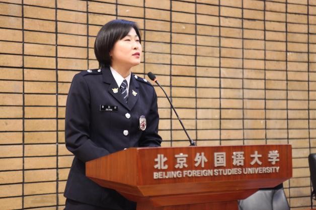 接下来,执法三班郑智善同学发言,表达了自己对所学课程的期望,并介绍了自己的十一出行情况,表达了对中国深切的喜爱,希望能够韩国与中国间友好协作的桥梁。为此,他们特别感谢中国公安部给他们带来的这次学习的机会,同时感谢北京外国语大学对他们的关心和支持。