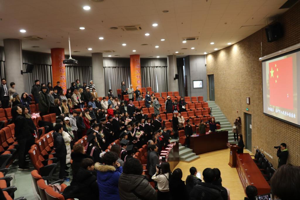2019年1月10日(星期四)下午14:00,2018—2019秋季学期北京外国语大学中国语言文学学院对外汉语系留学生本科生毕业典礼在av中文在线文华厅举行。