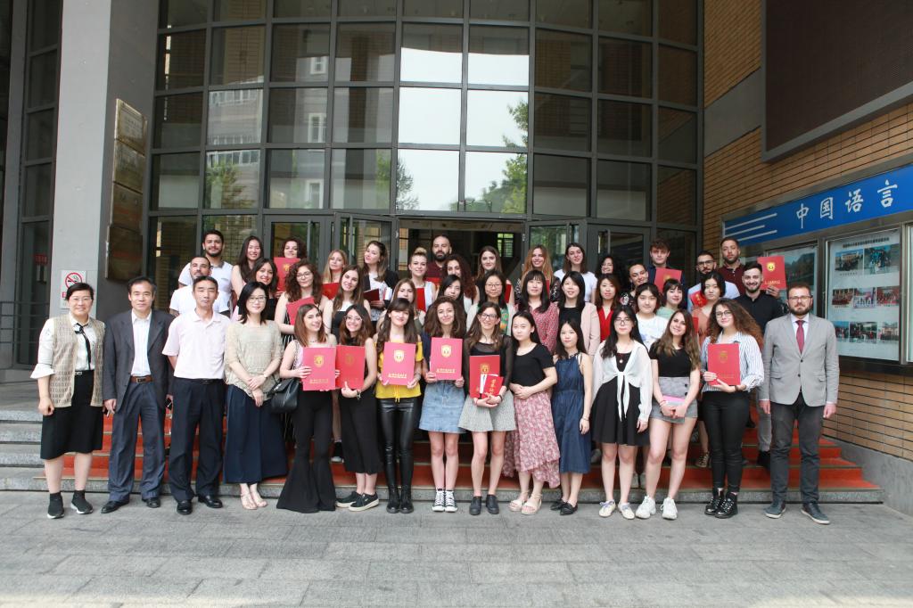 李冰主任首先致辞,他回顾了意大利罗马大学与北京外国语大学合作的悠久历史,对学生们顺利毕业表示祝贺,进一步介绍了北京外国语大学的发展情况。刘厚广书记代表学院对任课教师表示了感谢,回顾了同学们在北外三个月学习当中参与的精彩的活动,对学生提出了两点希望:养成终身学习的习惯,努力成为中意交流的使者。