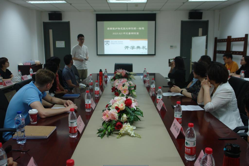 6月3日上午,美国宾夕法尼亚大学沃顿商学院-珞德国际关系学院中文暑期沉浸项目开学典礼在北京外国语大学av中文在线会议室举行。av中文在线执行院长张晓慧、留学生办公室主任李冰、外研社综合语种教育出版分社社长崔岚、宾大沃顿-珞德项目负责人焦晓晓以及全体项目学员、任课教师、学员辅导等30余人出席典礼。