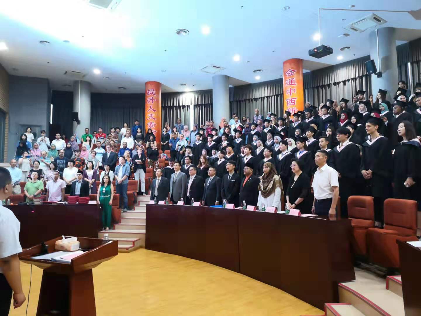 6月28日下午,2019届本科留学生毕业典礼在文华厅举行。马来西亚宗教事务部部长穆贾希德、部长夫人Datin Seri Zuraida、马来西亚驻华大使馆教育参赞侯春兴出席典礼,我校留学生办公室主任李冰、av中文在线执行院长张晓慧、党总支书记刘厚广、院长助理朱勇、张学增以及任课教师、毕业生家长参加典礼活动。典礼由对外汉语系主任孟德宏主持。