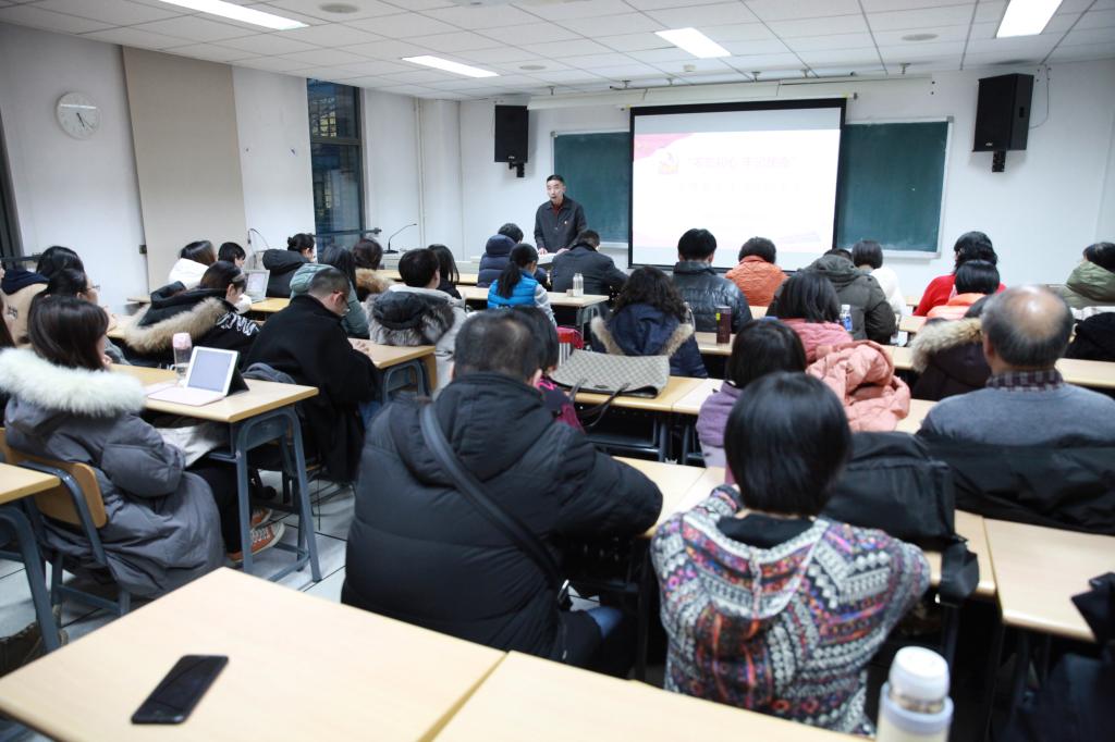 1月10日下午,继学校“不忘初心,牢记使命”主题教育总结大会之后,av中文在线召开总结大会,回顾教育活动的主要做法,总结教育活动成效,布置今后工作,动员全体党员师生牢记初心和使命,在新起点再出发,在新的征程更加发奋有为,为av中文在线党的建设和各项工作做出不愧时代的新贡献。党总支书记刘厚广做了主题教育工作报告,张晓慧主持会议,学校主题教育领导小组办公室李正玉、刘雷出席会议,师生党员60余人参加会议。
