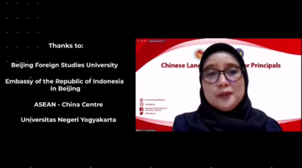 12月3日,由中国-东盟中心、印度尼西亚驻华大使馆主办,北外中国语言文学学院承办的印度尼西亚中学校长中文研修项目顺利结业。来自印度尼西亚各省区80余所中小学的一百余名校长和教学管理人员共同参加了为期三周的线上中文学习。学员们跟随中国语言文学学院的老师一起畅游中文的世界,学习了十余个日常交流话题,还参加了精彩的线上文化活动。学员们学习热情高涨,积极参与课堂互动,他们普遍反映项目教学话题实用,教材制作精美,教师敬业投入,给他们留下了深刻印象。