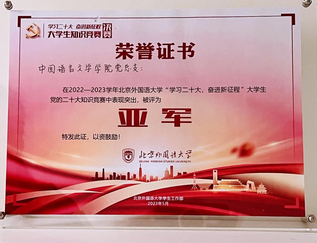 为深入学习宣传贯彻习近平新时代中国特色社会主义思想和党的二十大精神,激发大学生理论学习热情,中国语言文学学院党总支积极响应学校号召,组织学院学生党员积极参与北外“学习二十大,奋进新征程”大学生知识竞赛。