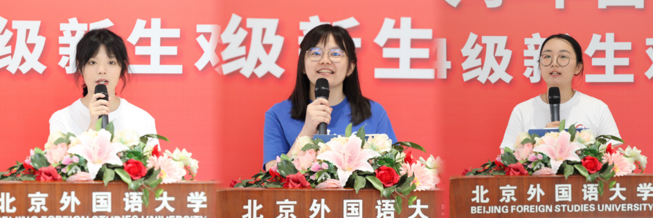 本科生代表梁雨锨提出,要在当今时代新旧交织的交汇点中锐意创新,开拓进取,孜孜以求。利用好大学这一方知识的沃土,不断充实头脑,丰富知识。心存希冀,履践致远;勠力同心,和衷共济;述往思来,向史而新。来自马来西亚的赖施羽向大家分享了自己在北外的学习和生活中走过的三个阶段,经历的三次蜕变——从陌生到熟悉,从适应到融入,从本科生到硕士生。怀着多元的文化视角,她从祖国马来西亚来到北京,迈入北外av中文在线更加国际化的学习环境。博士生代表王思娴鼓励全体新生勇敢迎接充满挑战和机遇的学术旅程,纵使被现实的崎岖不平羁绊,也依旧能够保持前行的动力和韧劲,在学术领域中开疆拓土、披荆斩棘。