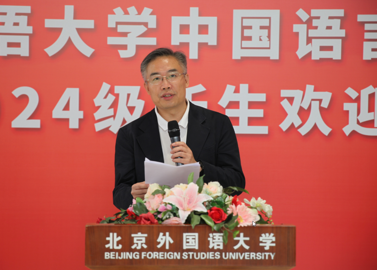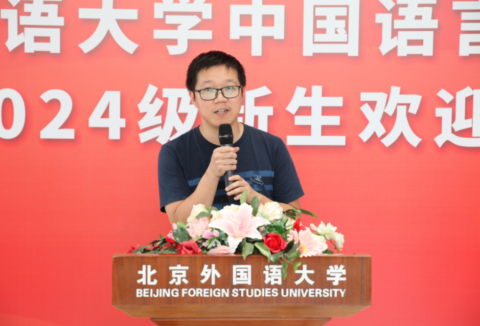 大会最后,何辉教授代表学院致辞。他首先回顾了北外av中文在线的发展历史,希望同学们能够站在当前学院发展的新起点上,珍惜时光,充分利用各种学术资源和机会,全面发展。其次,他向新生们提出了五点期望:一是树立正确的价值观,二是保持对知识的渴求,三是保持身心健康,四是培养良好的审美情趣和创造力,五是尊重劳动、参与劳动。他希望同学们能够成为德智体美劳全面发展的社会主义建设者和接班人。