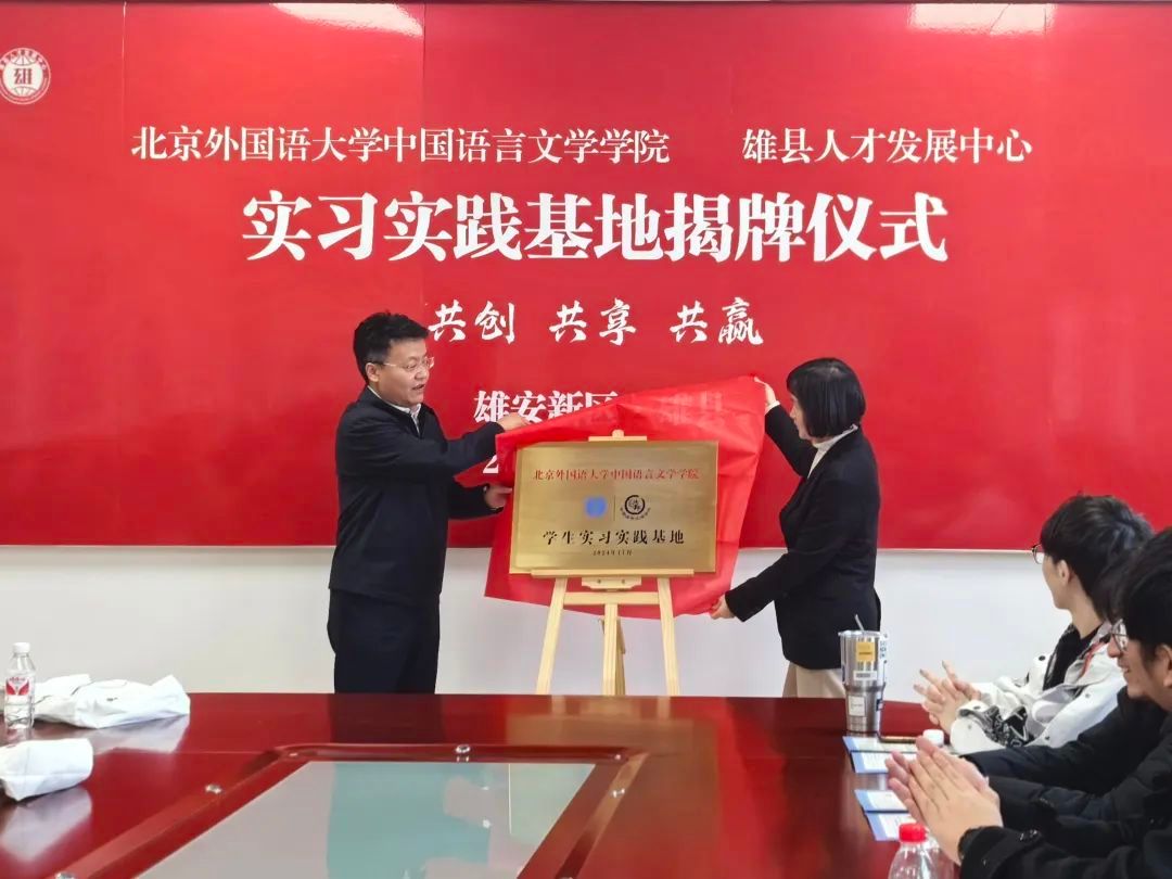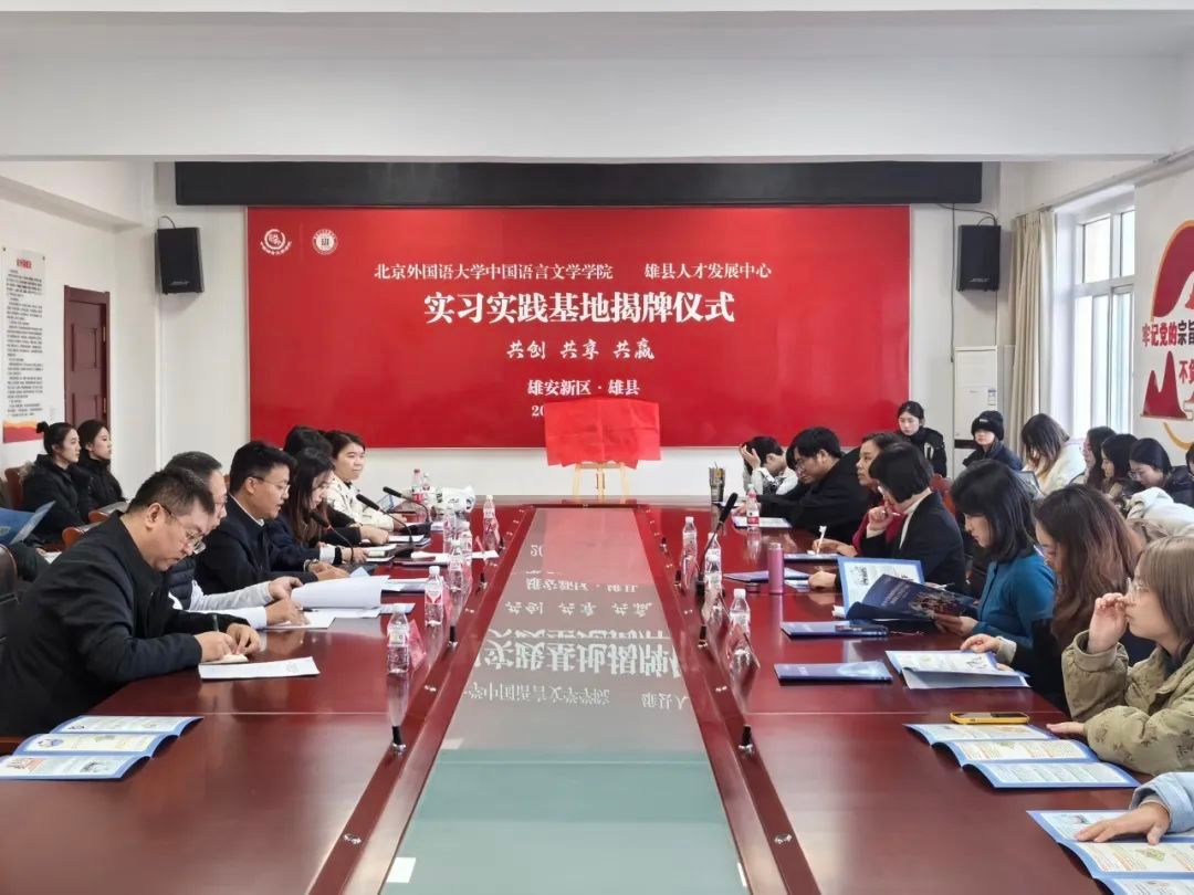 为深入学习贯彻党的二十届三中全会精神,全面落实新时代党的教育方针,完善学院学生实习实践的制度要求,11月20日,中国语言文学学院与雄安雄县人才发展中心举行实习实践基地共建揭牌仪式暨“首都大学生雄安行”活动。雄县县委常委、组织部长杜皓,雄县人才发展中心主任徐雪莲,中国语言文学学院党总支书记蔡芝芳、副书记曹文婷,辅导员李美玲、初威言与学院40余名青年学生参加活动。