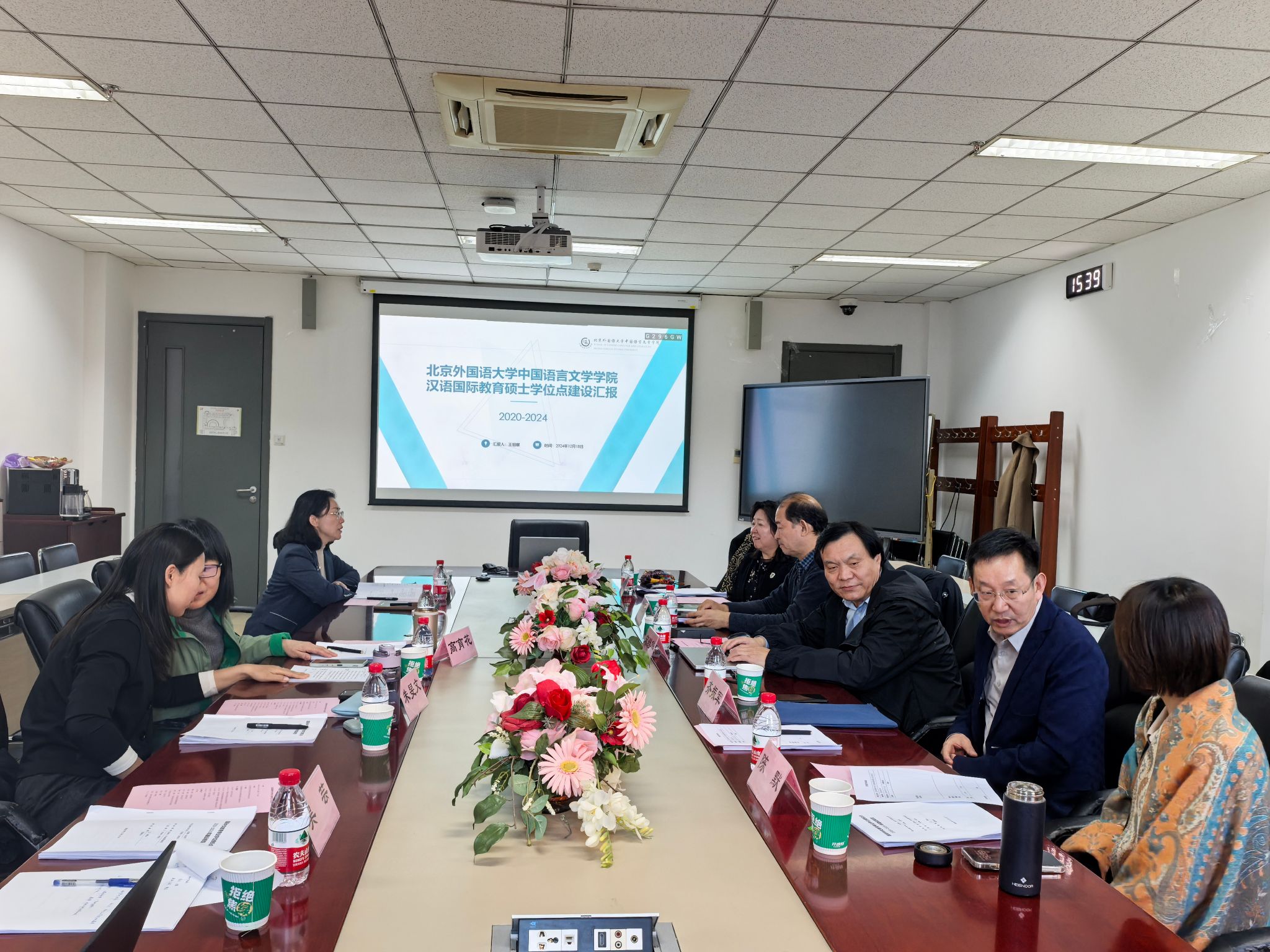 为认真贯彻落实国务院学位委员会、教育部和学校关于2020-2025年学位授权点周期性合格评估工作的要求,北京外国语大学中国语言文学学院于12月18日下午,在204会议室举行了“汉语国际教育专业学位授权点周期性评估专家工作会”。本次会议邀请了北京师范大学人工智能学院宋继华教授、北京师范大学国际中文教育学院王学松教授、中国人民大学国际文化交流学院陈默教授、北京市朝阳区芳草地国际学校齐振军校长和北京外国语大学孔院工作处金利民教授等五位专家进校现场评议。