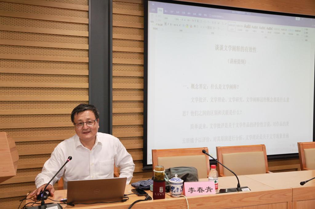 2021年5月19日下午,华南师范大学文学院特聘教授、博士生导师,中国中外文学理论学会副会长、中国文学理论学会副会长、中国文艺评论家协会理事李春青先生在校图书馆三层学术报告厅为全校师生带来了题为《谈谈文学阐释的有效性》的讲座,讲座由av中文在线李建盛教授主持,av中文在线院长詹福瑞教授以及部分老师到会聆听。