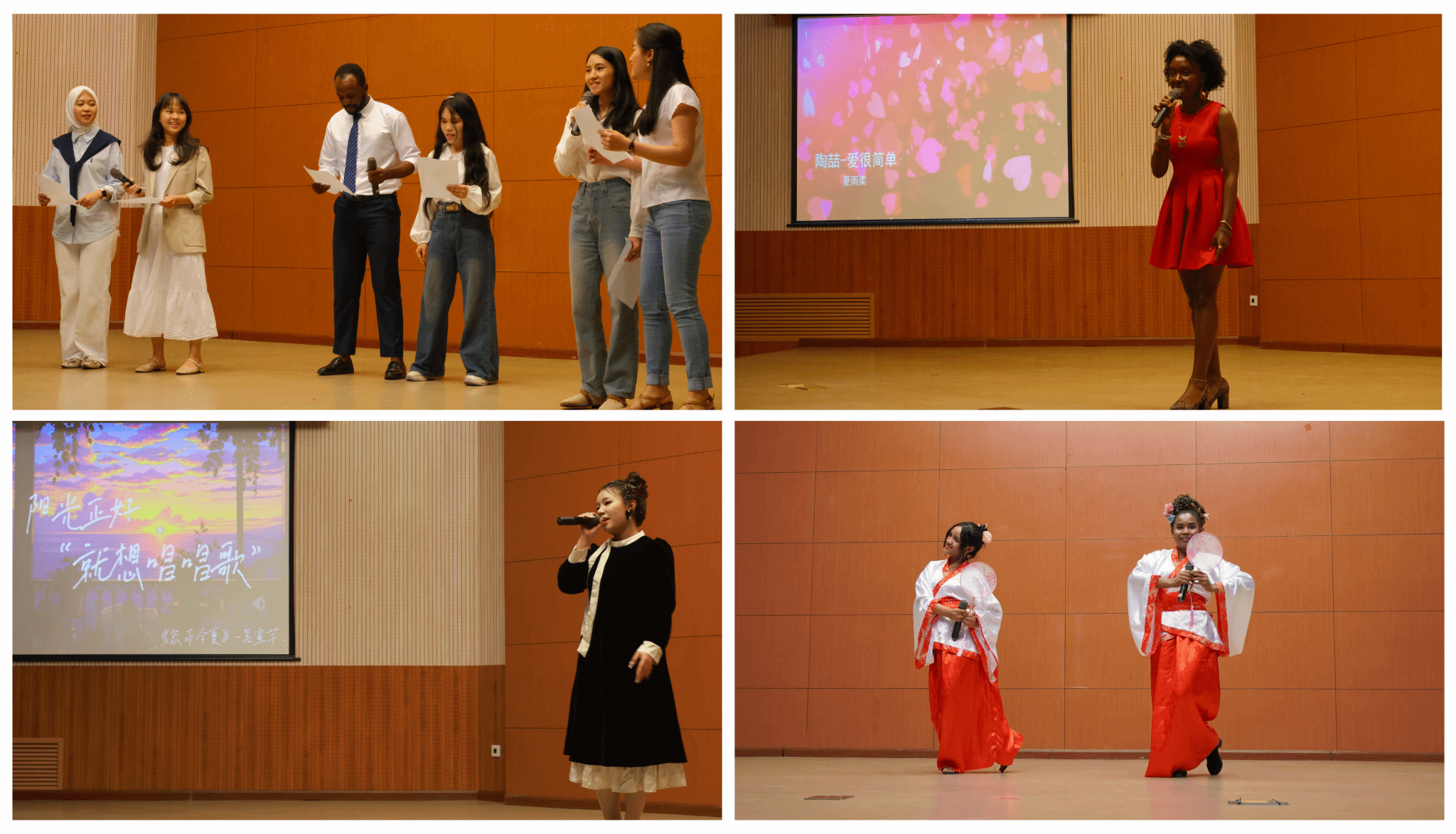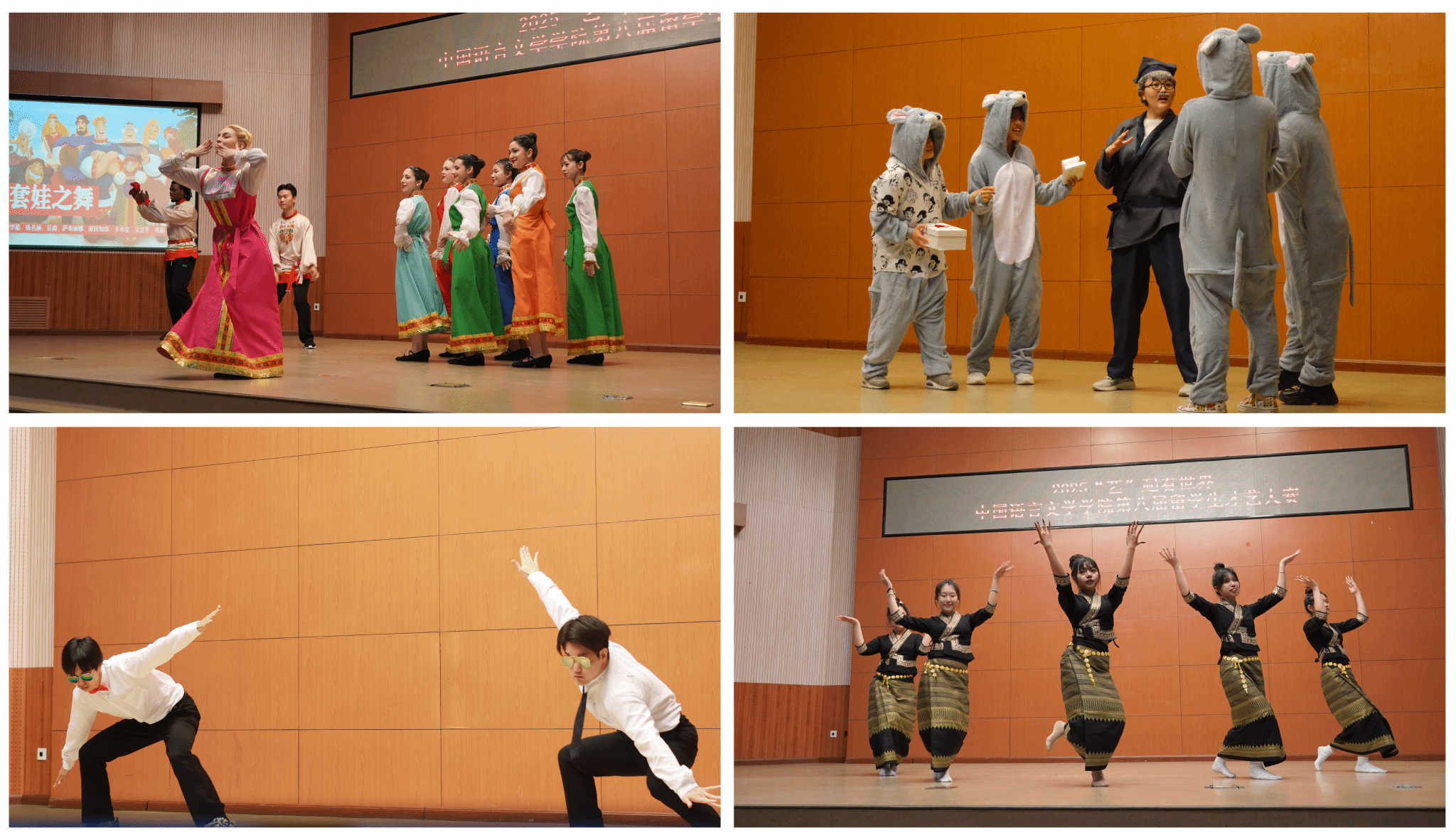 本次大赛汇聚了来自全球16个国家的68位学生,节目涵盖语言类与非语言类两大类别,展现了多元文化交融下的青春风采与艺术魅力。来自阿塞拜疆的爱乐、日本的佐藤美雪、俄罗斯的高明利、贝宁的郝强四位同学担任本次大赛的主持。他们以字正腔圆的中文、从容自信的台风与亲和幽默的语言,化作文化交流的灵动纽带,巧妙串联起一个个精彩节目。在他们的引领下,晚会节奏张弛有度、衔接自然流畅,18个节目以歌曲、舞蹈、戏剧、器乐等多种艺术形式,交织出一幅生动的“多国风情画”。