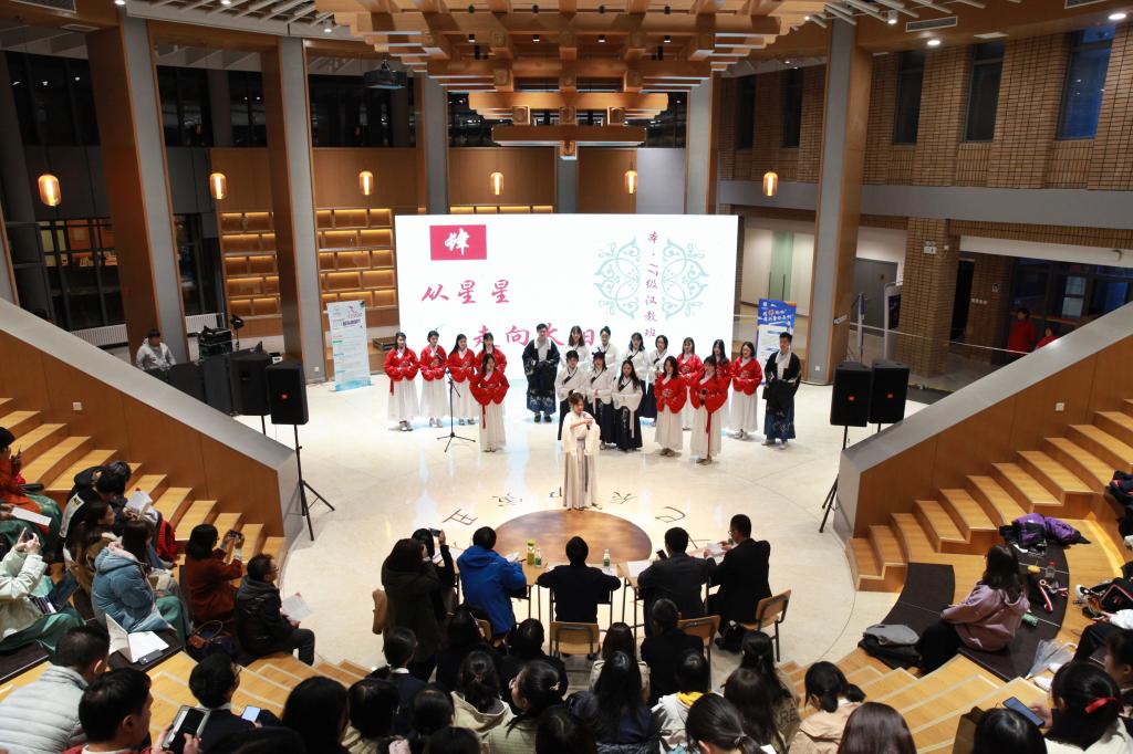 飞花令和知识问答环节为朗诵会锦上添花。场上选手的优秀表现,场下同学们的积极应援,充分体现了“君子之争”的风度与礼节。