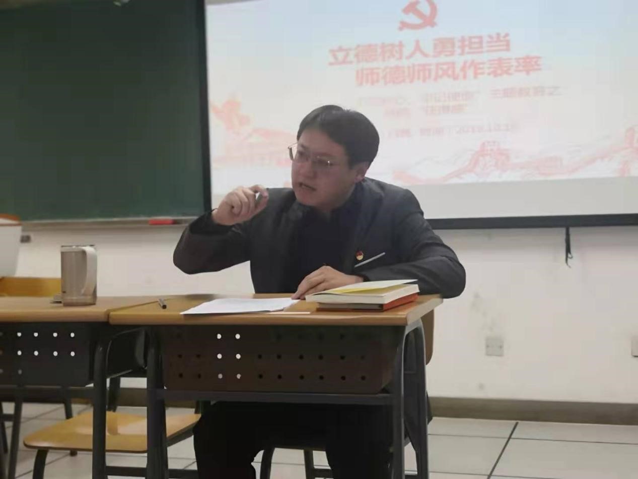 10月16日下午,av中文在线党总支联合两个教师党支部在227教室开展讲党课活动。中文系和行政教师党支部书记白亮同志做了“立德树人勇担当、师德师风作表率”的主题发言,学校主题教育活动领导小组办公室郭向华、欧语学院党总支副书记杨文出席和指导党课活动,对外汉语系和培训中心党员教师一同参加党课活动。