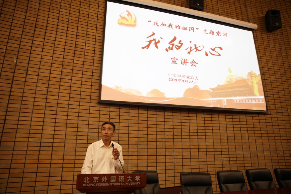 作为教师党员,罗静向与会师生分享了自己的“教师梦”。她说,自己如愿成为了一名人民教师,我们要用爱心和真心关爱学生,培养社会主义事业建设者和接班人,要将中国特色社会主义理论融入优秀传统文学文化教育教学过程之中,给予学生们正确的“三观”,要坚守立德树人初心,担当党员教师的重要使命。白雪演讲时说,作为对外汉语专业教师,培养学生客观认识中国、了解中国是重要的教学目标。立足自身实际,“我的初心”就是要将正确的观点与立场融入教材和教学内容,不忘“为人民谋幸福,为民族谋复兴”的初心,为把中国介绍给世界贡献自己的力量。